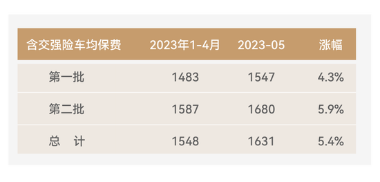 一方面,不管是第一批上线地区,照旧第二批上线地区,两批地区含交强险和单买卖险的车均保费,在5月份均环比飞腾。