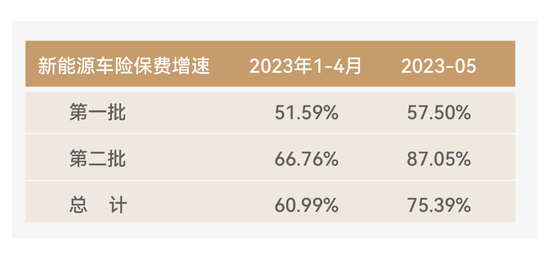 5月单月,第一批上线地区与第二批上线地区的新动力车险保费增速,相较1-4月知晓晋升。