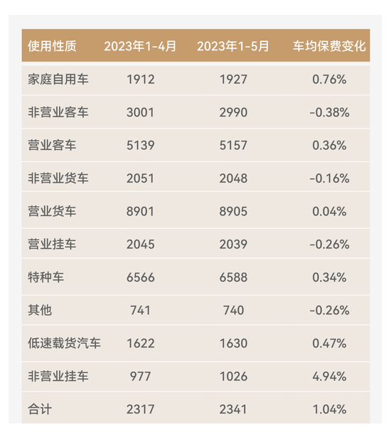感恩另一方面,从使用性质口径来看,1-5月买卖险车均保费较1-4月环比飞腾了1.04%,其中家用车的涨幅靠前。